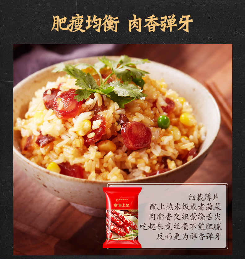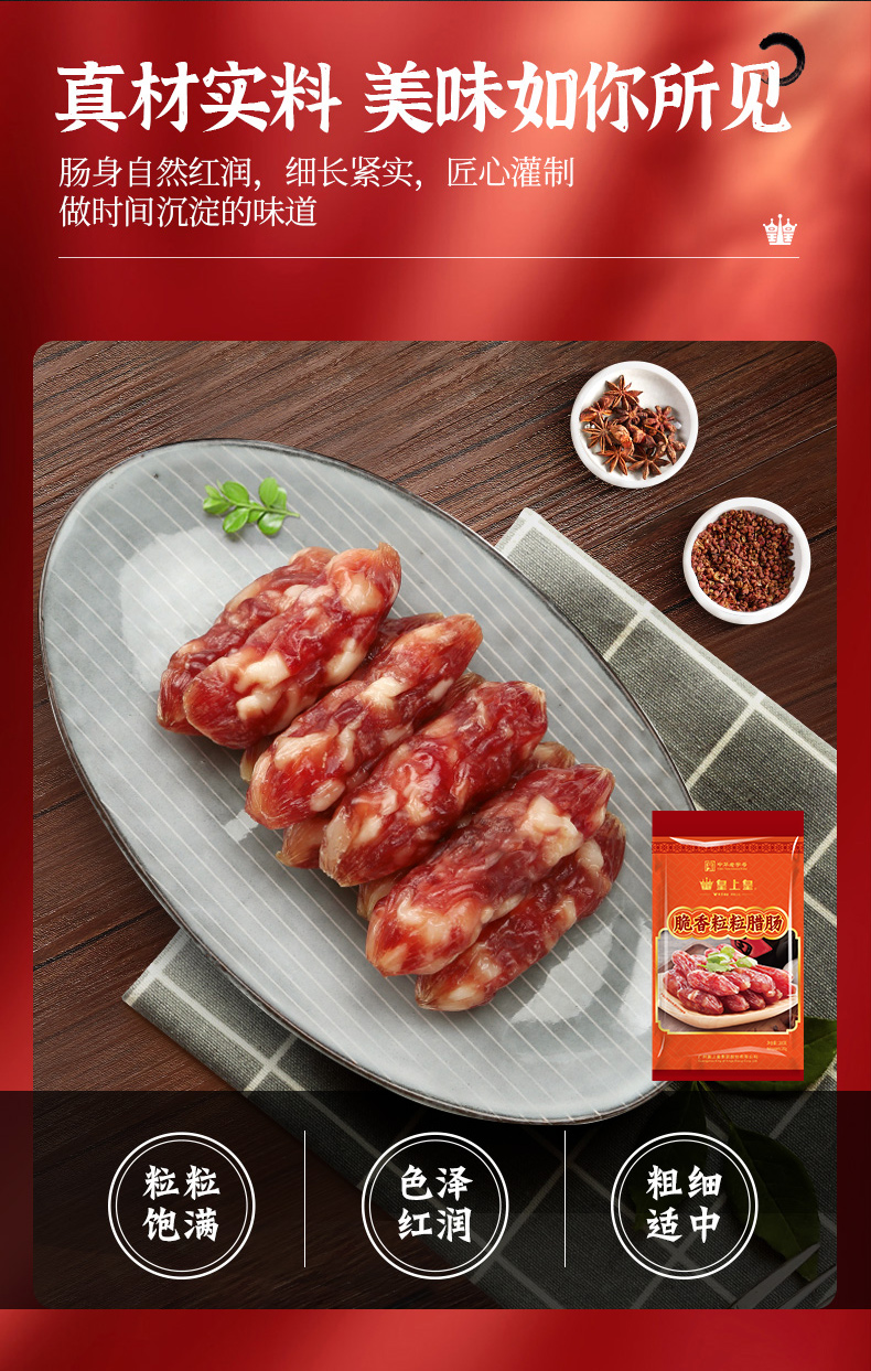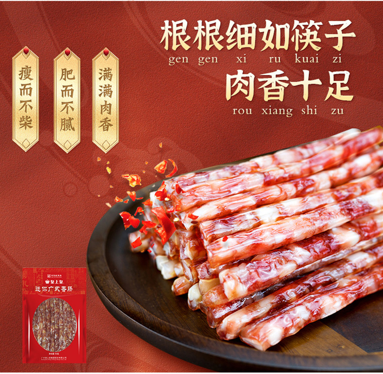 鮮味臘腸、脆香粒粒臘腸、富豐臘腸、蛋黃鳳凰盞、迷你廣式香腸、原味豬肉脯