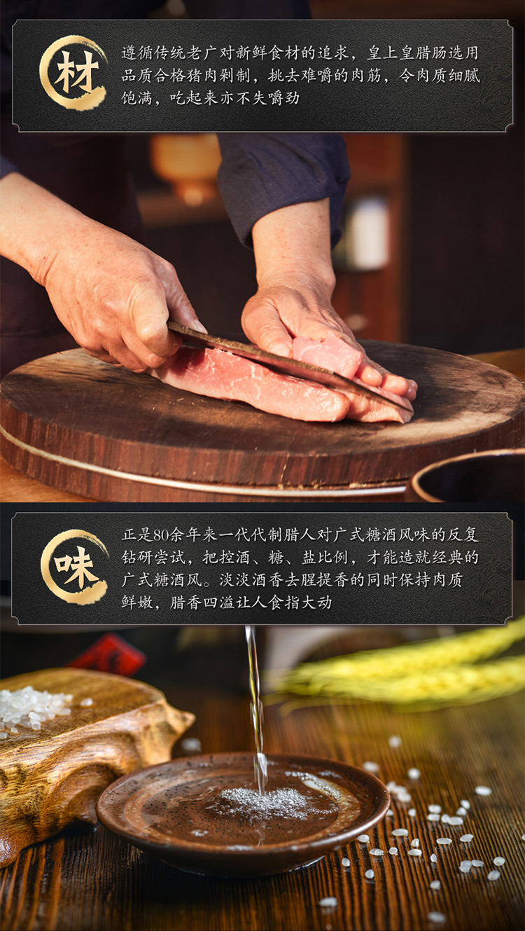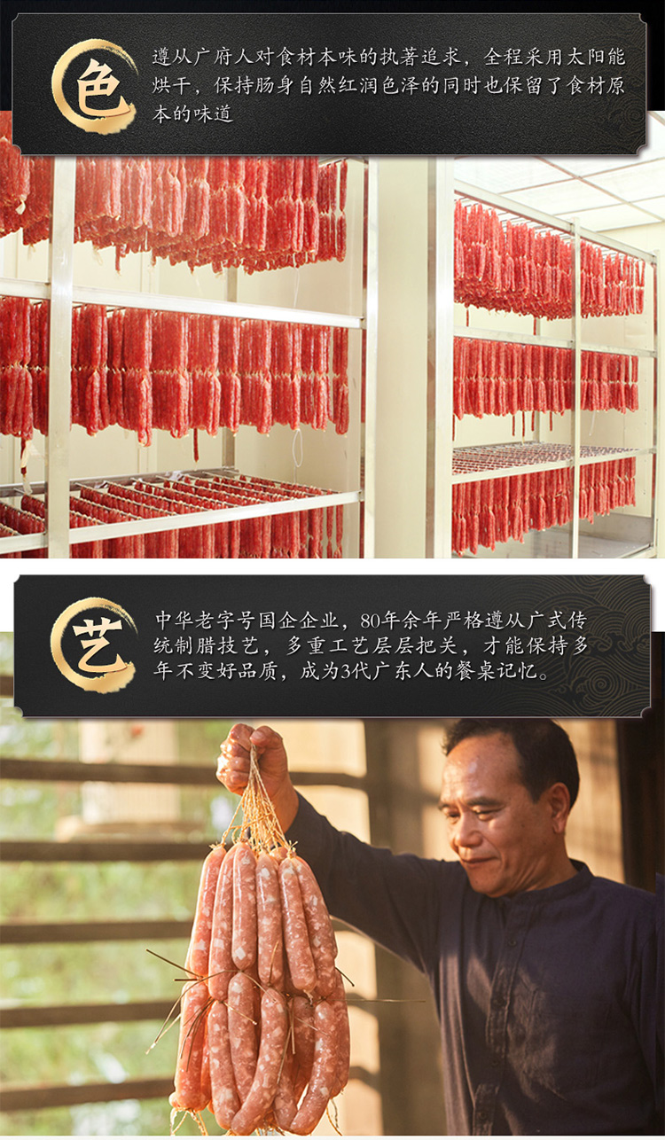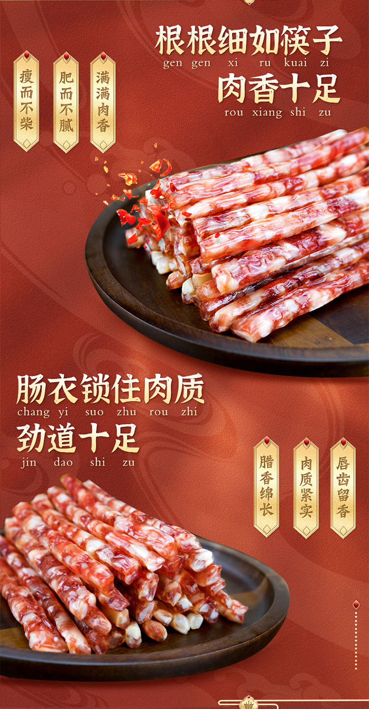 豬肉、白砂糖、白酒、食用鹽、味精、食品添加劑(D-異抗壞血酸鈉、亞硝酸鈉)、膠原蛋白腸衣