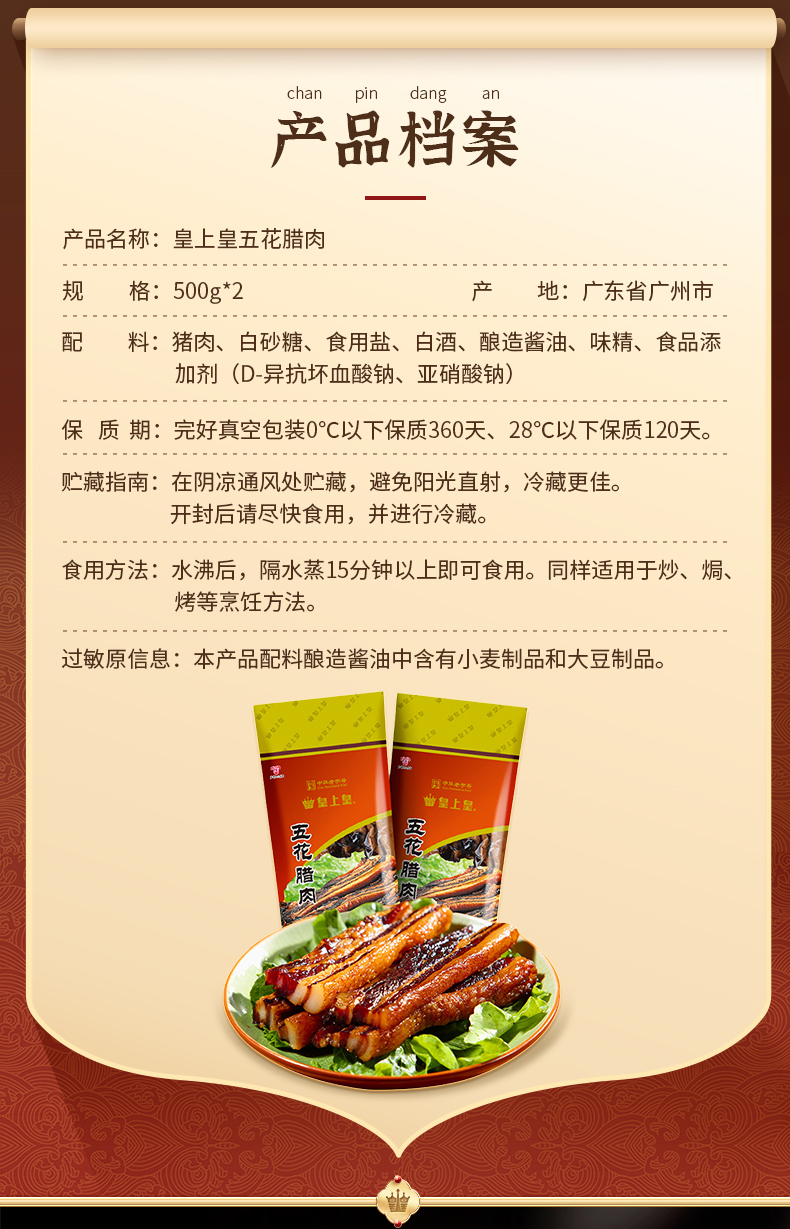 豬肉、白砂糖、食用鹽、白酒、釀造醬油、味精、食品添加劑(D-異抗壞血酸鈉、亞硝酸鈉)