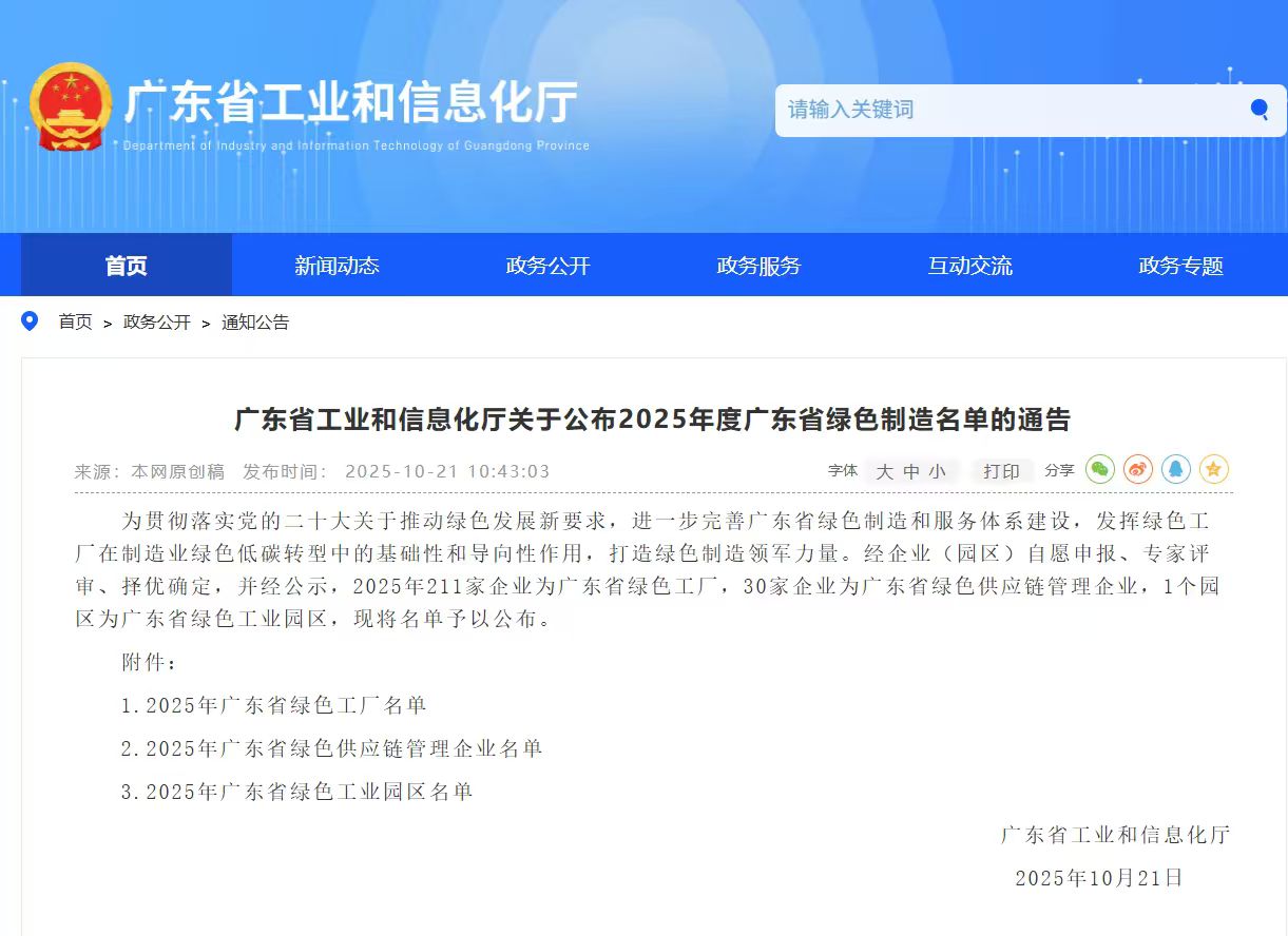 近期,廣東省工業(yè)和信息化廳公布2025年度廣東省綠色制造名單,皇上皇上榜“廣東省綠色工廠”名單,這是對(duì)其綠色生產(chǎn)實(shí)踐的權(quán)威認(rèn)可,亦是企業(yè)踐行綠色可持續(xù)發(fā)展的重要里程碑。